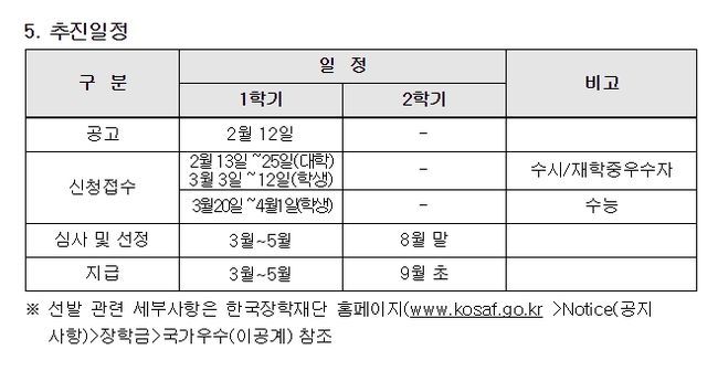 수시유형 및 재학중우수자는 대학별 인원배정(2월25일) 후 각 대학에서 추천받은 학생에 한해 온라인으로 오는 3월 3일부터 12일까지 신청을 받는다. 수능유형은 수능 등급조건을 충족하는 학생이라면 누구나 온라인으로 3월 20일부터 4월 1일까지 개별 신청할 수 있다. 추천자 선발 일정은 대학별로 상이하므로 소속 대학에 개별 확인해야 한다.
