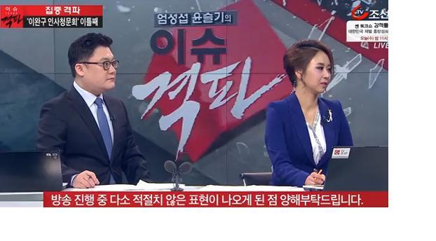 TV조선은 방송 하단을 통해 자막으로 ‘적절치 않은 표현’이라며 사과했지만 논란은 가라앉고 있지 않다.