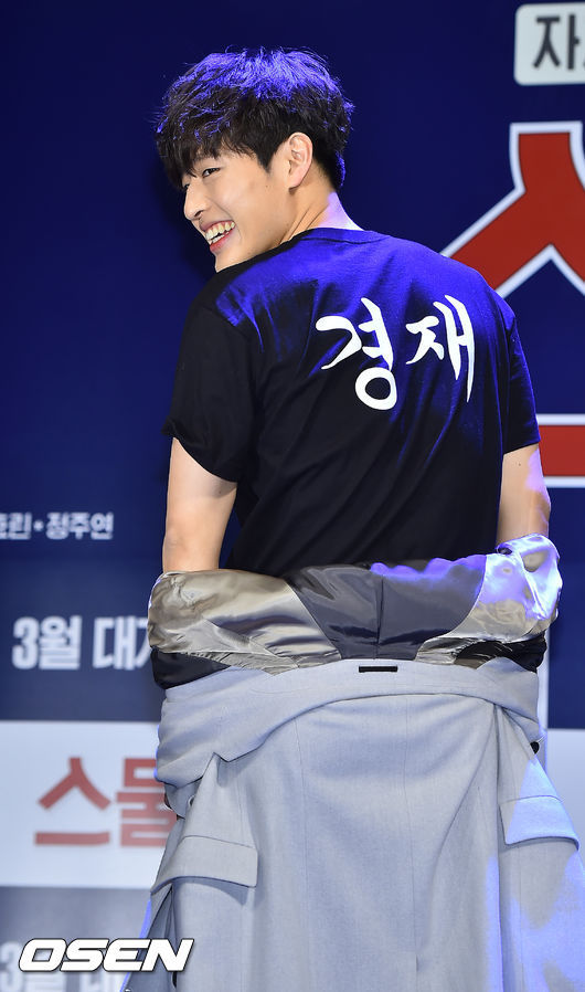 강하늘은 12일 오전 서울 압구정 CGV에서 열린 영화 ‘스물’ 제작보고회에서 ‘스물’이 적혀 있는 티셔츠를 입고 등장했다.