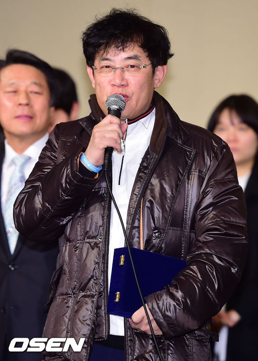 12일 오전 서울 여의도 63빌딩에서 진행된 '송해 헌정공연' 설명회 및 집행위원 위촉식에서 이경규가 인사말을 전하고 있다.