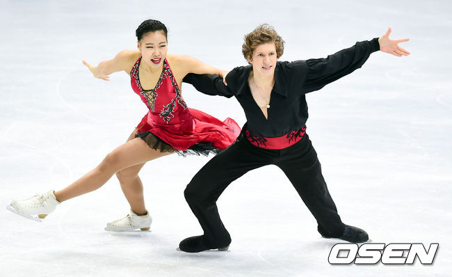 12일 오전 서울 목동아이스링크에서 진행된 '2015 사대륙 피겨선수권 대회' 아이스댄스 리베카김과 끼릴 미노프가 연기를 펼치고 있다.