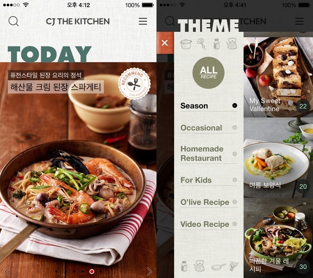 좀 더 쉬운 요리법을 찾는다면 CJ더키친(CJ the Kitchen, 무료)이 유용하다. 이 앱은 쉽고 간단한 요리법들이 많고 조리법, 재료, 브랜드 별 레시피를 검색할 수 있다. 관심이 가는 요리법은 스크랩해 SNS 공유도 가능하다.