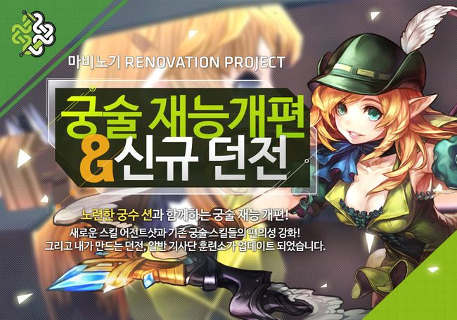 넥슨은 온라인게임 ‘마비노기’가 ‘레노베이션(Renovation)’ 프로젝트 세 번째 업데이트로 궁술 재능개편을 실시하고 신규 던전을 공개했다고 12일 밝혔다.