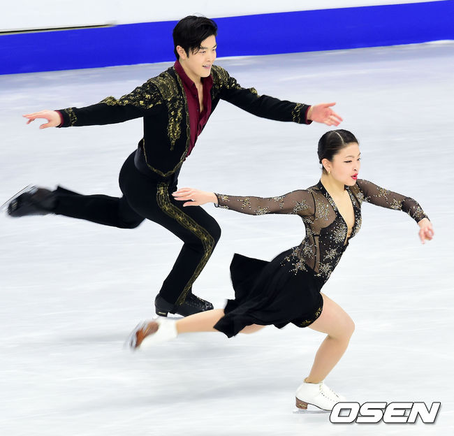 12일 서울 목동아이스링크에서 진행된 '2015 사대륙 피겨선수권 대회' 아이스댄스 쇼트부문 마이아 시부타니와 알렉스 시부타니가 멋진 연기를 펼치고 있다.