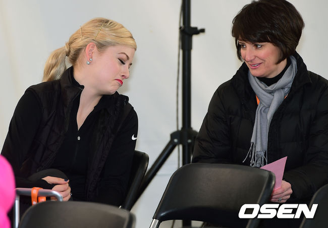 12일 서울 목동아이스링크에서 진행된 '2015 사대륙 피겨선수권 대회' 피겨 여자싱글 추첨식에서 미국 그레이시 골드가 익살스러운 표정을 짓고 있다
