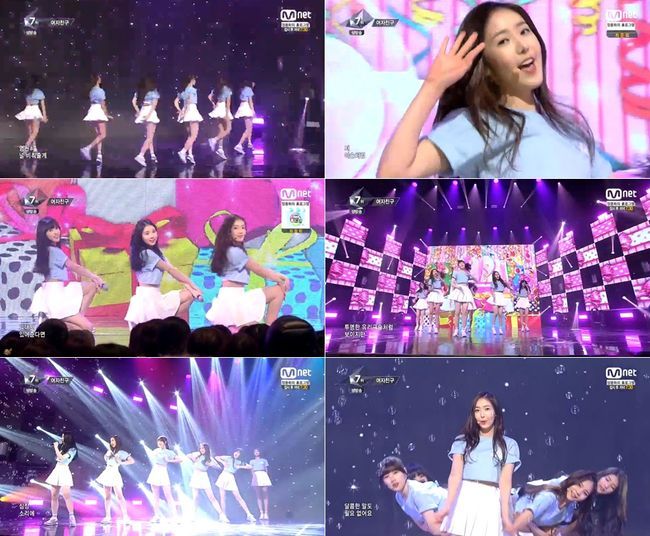 여자친구 멤버들은 사랑스러운 표정을 지으며 무대 위에서 팬들 이목을 집중시켰다. 상큼한 여자친구의 노래는 비누방울과 조명 등 화려한 이펙트로 꾸며져 더욱 눈길을 사로잡았다.