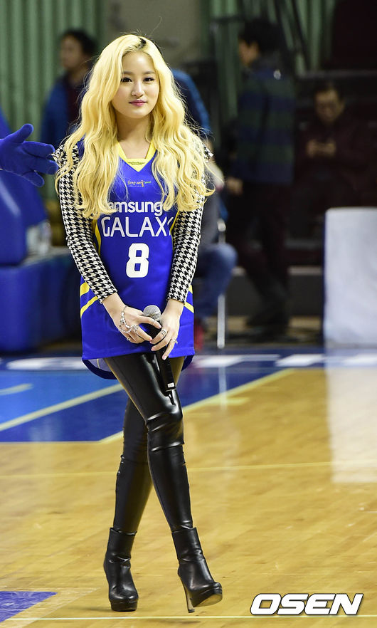 경기시작전 그룹 타히티 제리가 애국가를 부르기 위해 입장하고 있다.