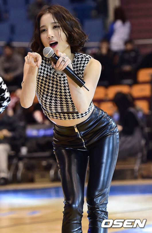 2쿼터 종료후 그룹 타히티 지수가 축하공연을 하고 있다.