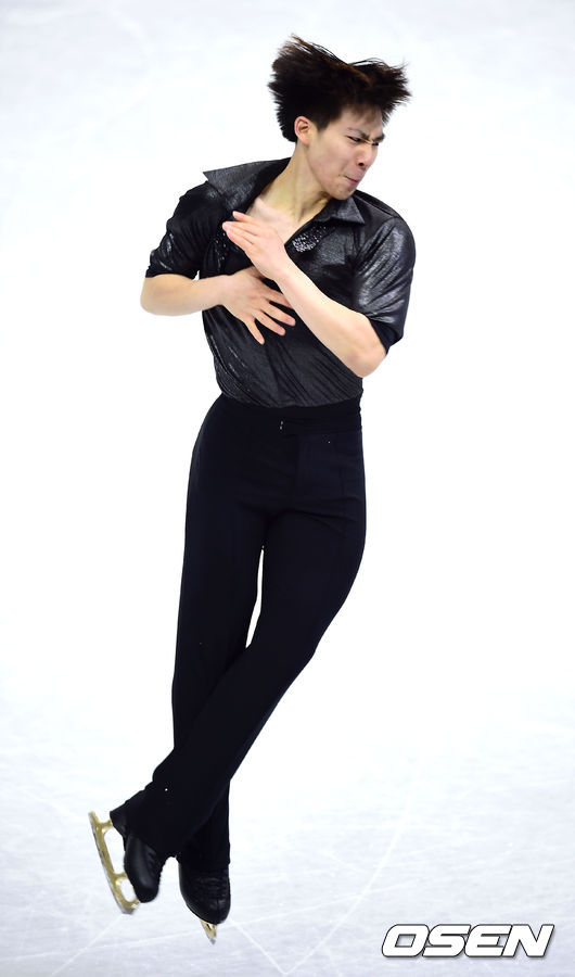 12일 서울 목동아이스링크에서 진행된 '2015 사대륙 피겨선수권 대회' 피겨 남자 싱글 프리부문, 이준형이 연기를 펼치고 있다. 3그룹 연기까지 현재 7위를 기록하고 있다.