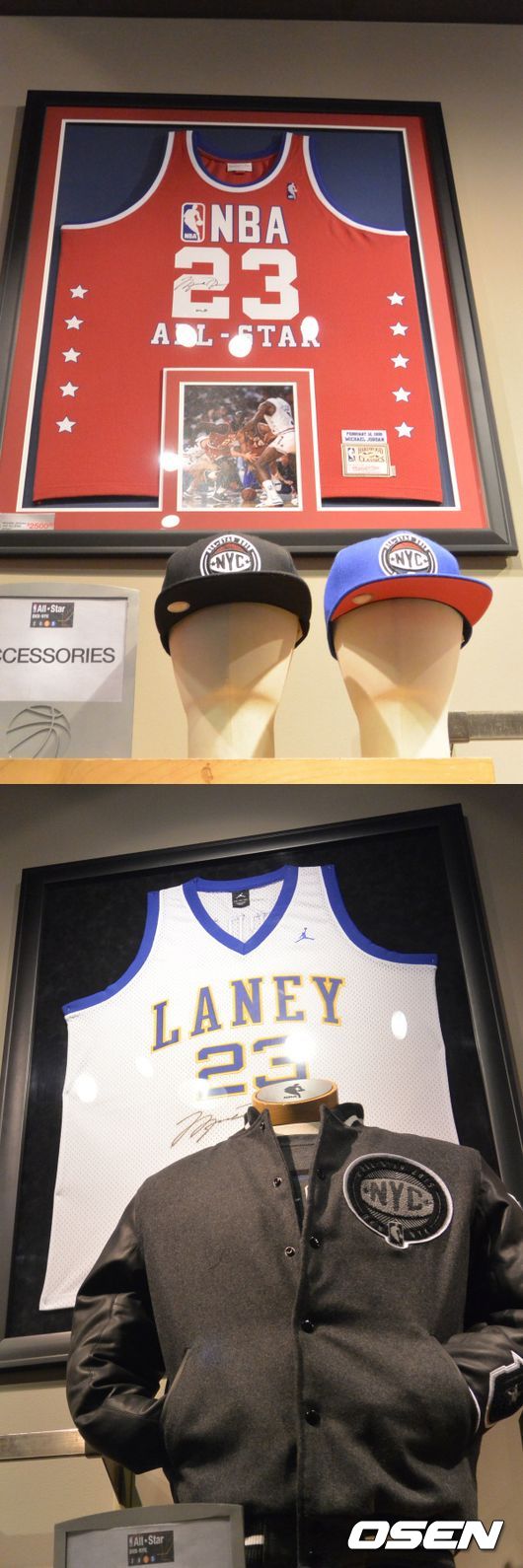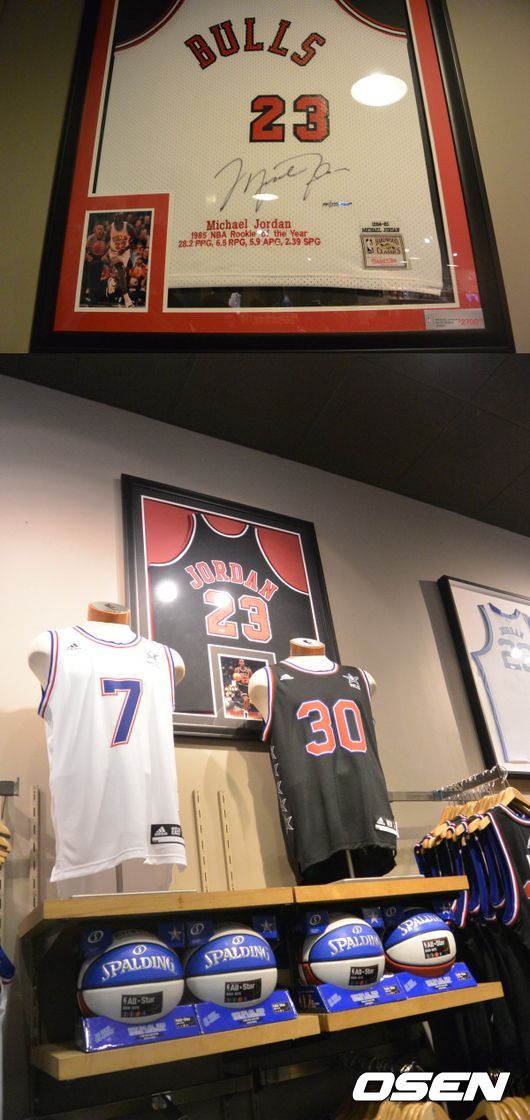 올스타전 분위기를 물씬 느낄 수 있는 NBA 스토어를 방문했다. 입구에서 가장 돋보이는 물건은 벽에 걸린 마이클 조던의 시카고 불스 시절 유니폼이었다. 1998년 조던이 불스에서 뛰던 마지막 시즌에 입었던 것과 동일한 디자인의 검은색 유니폼으로 소장가치가 매우 높다. 여기에 마이클 조던의 친필사인이 들어갔다. 가격이 무려 2700달러(약 300만 원)였다.