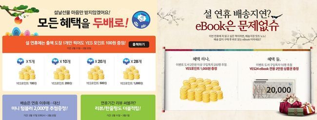 인터넷 서점 예스24가 설 연휴를 맞아 독서와 공연, 영화 관람 등 다채롭게 즐길 수 있는 문화 이벤트를 마련했다.