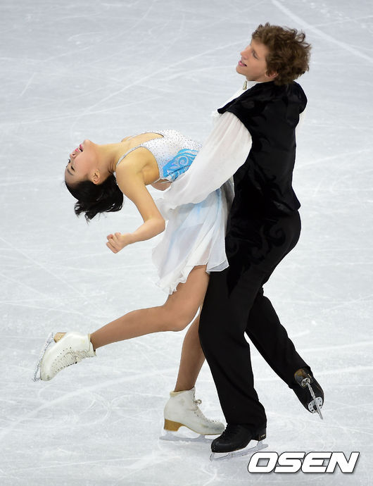 13일 서울 목동아이스링크에서 진행된 '2015 사대륙 피겨선수권 대회' 아이스댄스에서 레베카김과 끼릴 미노프가 연기를 펼치고 있다.