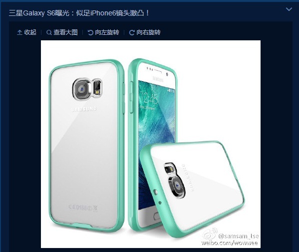 12일(한국시간) 외신 BGR와 더버지 등은 "갤럭시S6로 추정되는 제품 디자인이 케이스 제작자에 의해 공개됐다"며, 중국의 한 스마트폰케이스 제작자의 웨이보를 인용해 보도했다.