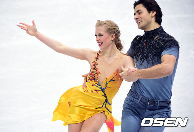 13일 서울 목동아이스링크에서 진행된 '2015 사대륙 피겨선수권 대회' 아이스댄스 케이틀린 위버와 앤드루 포제가 연기를 펼치고 있다.