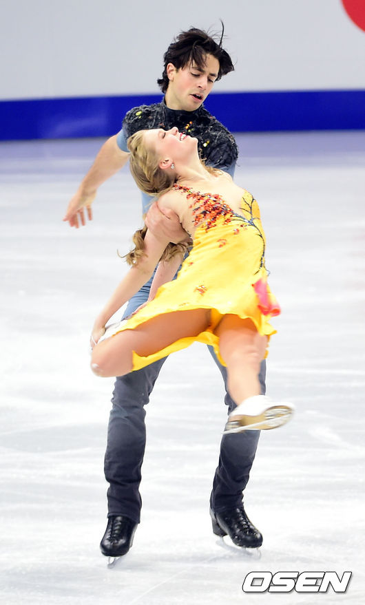 13일 서울 목동아이스링크에서 진행된 '2015 사대륙 피겨선수권 대회' 아이스댄스 케이틀린 위버와 앤드루 포제가 연기를 펼치고 있다.