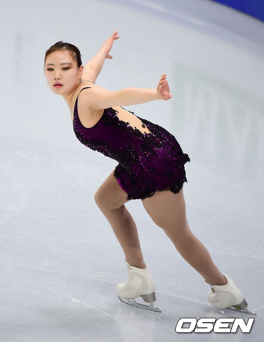 13일 서울 목동아이스링크에서 진행된 '2015 사대륙 피겨선수권 대회' 여자 피겨 쇼트부문, 김해진이 연기를 펼치고 있다.