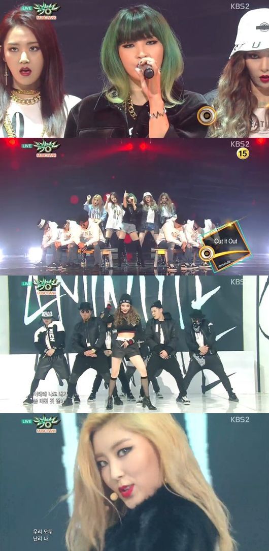 포미닛은 13일 오후 방송된 KBS 2TV ‘뮤직뱅크’에서 ‘1절만 하시죠’와 ‘미쳐’를 열창, 화려한 무대를 꾸몄다.