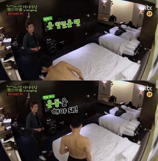이날 방송에서 허지웅은 벗은 몸의 신동엽을 보더니 “형, 운동 좀 해야겠다”라고 말했다. 이어 “옷 입었을 때는 괜찮았는데 벗으니까 운동 해야겠네”라고 말해 보는 이들을 폭소케 했다.