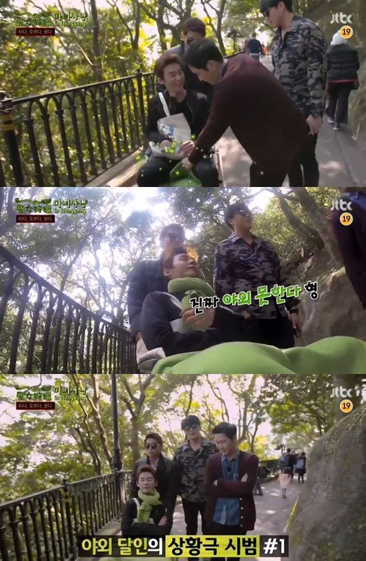 이날 방송에서 신동엽은 다리를 다쳐 휠체어에 앉은 허지웅에게 이상한 상황극을 시도했다. 이를 보던 성시경은 “형, 야외 진짜 못한다”라고 구박, 보는 이들을 폭소케 했다.