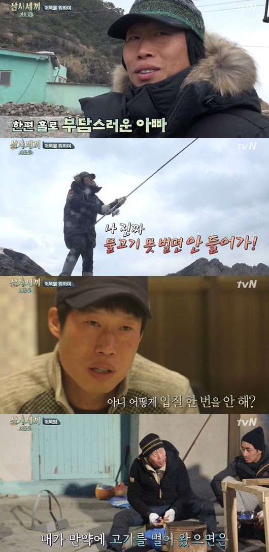 유해진은 13일 오후 방송된 tvN 예능프로그램 ‘삼시세끼 어촌편(이하 ’삼시세끼‘)’에서 바다낚시에 실패, 자신의 무능력함을 자책해 웃음을 자아냈다.