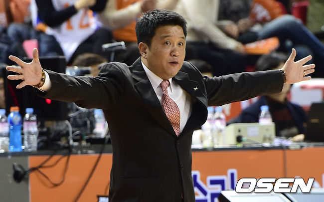 2쿼터 전자랜드 유도훈 감독이 작전지시를 하고 있다.