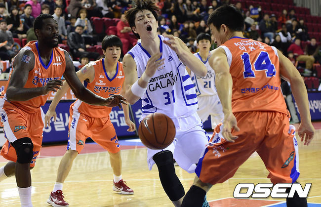 전반은 그야말로 졸전. 양 팀 모두 저조한 야투성공률로 좀처럼 득점을 내지 못했다. 삼성은 개인기에 의존한 단조로운 공격에 3점슛까지 10개를 놓치며 침묵했다. 전자랜드는 테렌스 레더가 6점을 넣고, 포웰과 정병국이 3점슛 하나 포함 5점씩 넣으며 전반을 29-21로 리드했다.