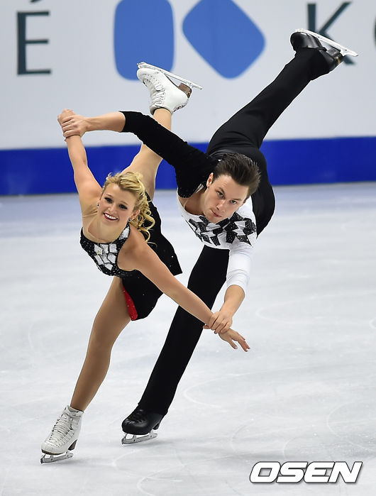 14일 오후 서울 목동아이스링크에서 진행된 '2015 사대륙 피겨선수권 대회' 여자 피겨 아이스댄스 페어 프리, 캐나다 크리스틴 무어 타워스-마이클 마리나로가 멋진 연기를 펼치고 있다