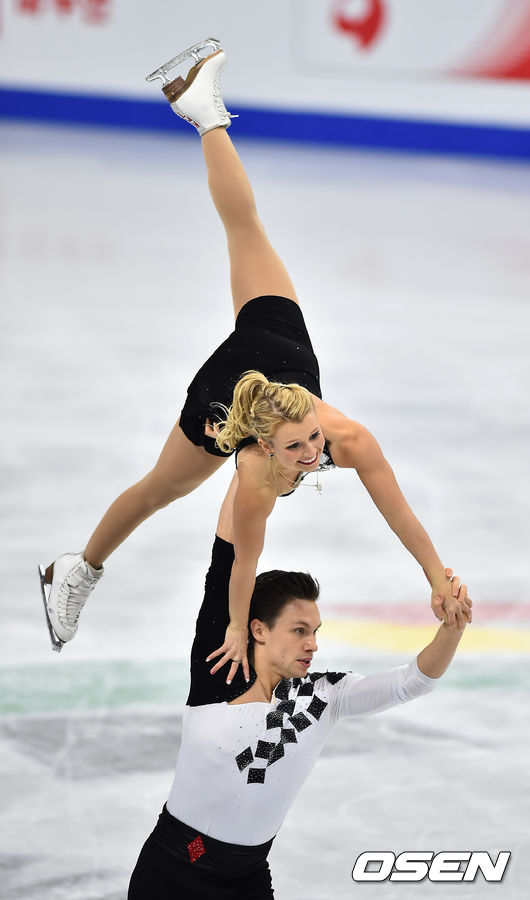 14일 오후 서울 목동아이스링크에서 진행된 '2015 사대륙 피겨선수권 대회' 여자 피겨 아이스댄스 페어 프리, 캐나다 크리스틴 무어 타워스-마이클 마리나로가 멋진 연기를 펼치고 있다