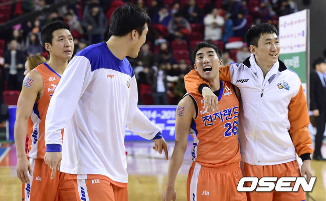 경기종료후 승리한 전자랜드 선수들이 기쁨을 나누고 있다. /greenfield@osen.co.kr