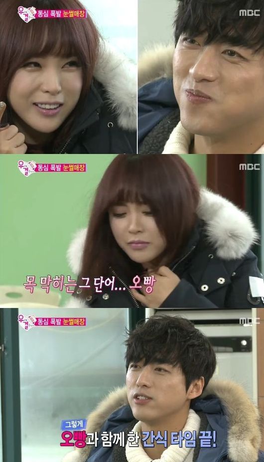 홍진영은 14일 오후 방송된 MBC 예능프로그램 '우리 결혼했어요 4'(이하 '우결')에서 남궁민과 함께 눈썰매장을 찾아 어묵, 고구마, 호빵 등을 열심히 먹었다.