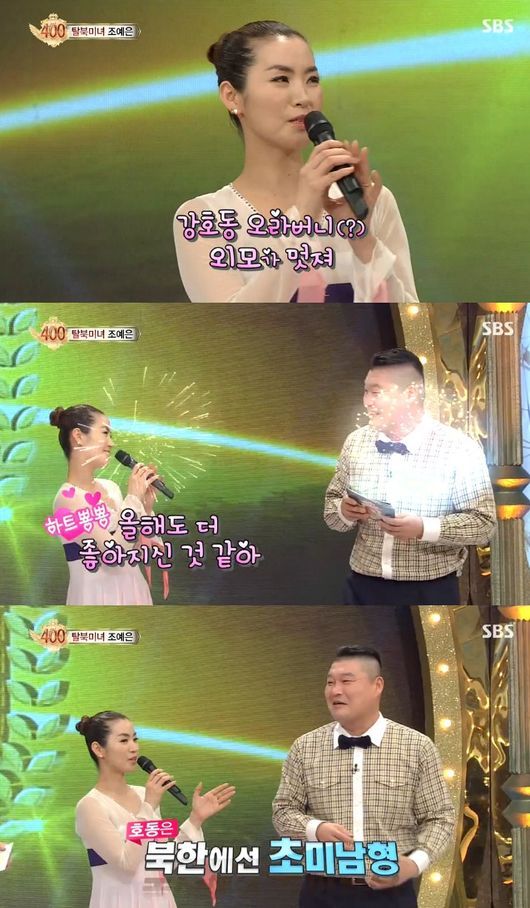 조 씨는 14일 방송된 SBS 예능프로그램 ‘놀라운 대회 스타킹’ 400회 특집 2탄에서 “호동이 오라버니를 좋아한다”면서 “북한에서는 인기를 얻을 수 있다”라고 말했다.