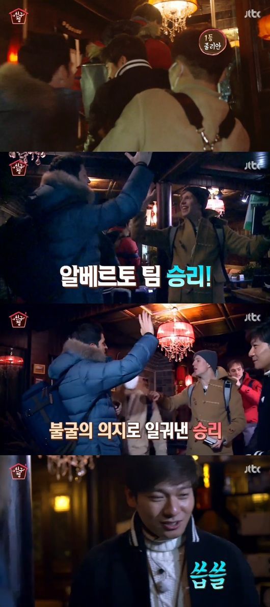 장위안 팀이 편하게 차를 타고 가는 중 알베르토 팀이 앞서갔고 결국 간발의 차이로 알베르토 팀이 승리했다.