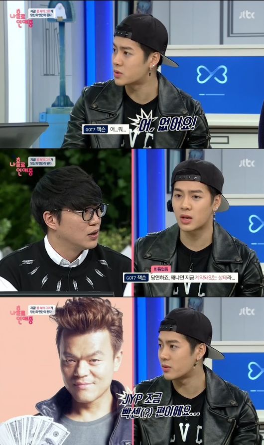 잭슨은 "지금은 사귈 수 없다. 왜냐하면 지금 계약돼 있는 상태다"며 "JYP 조금 빡쎈(?) 편이다"고 밝혔다.