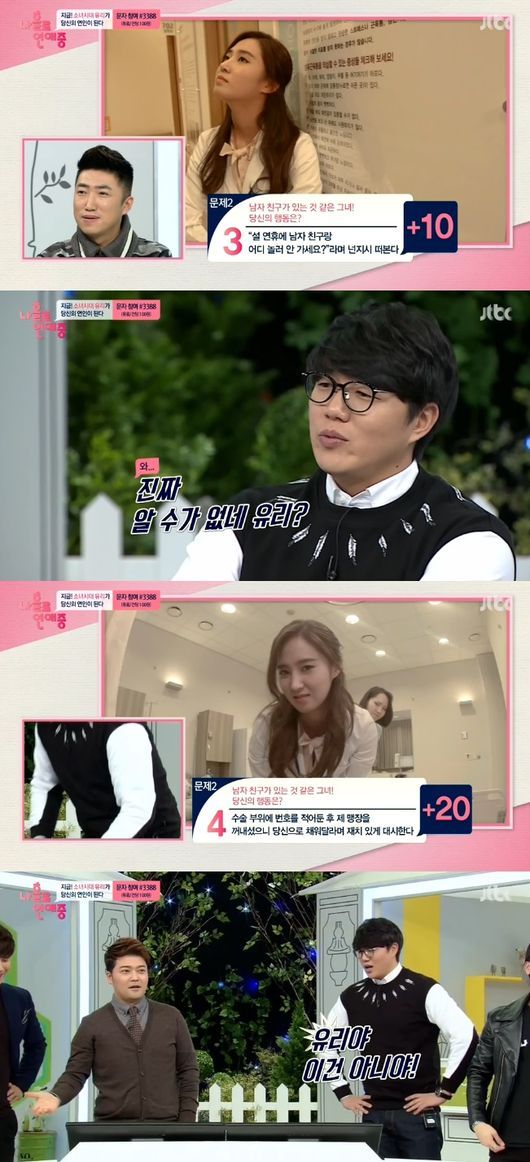 14일 방송된 JTBC '나홀로 연애중'에서는 MC 성시경, 전현무, 김민종, 장동민, 신과 게스트 갓세븐의 잭슨이 두 번째 가상연인 소녀시대의 유리와 가상현실 연애를 하는 내용이 전파를 탔다.