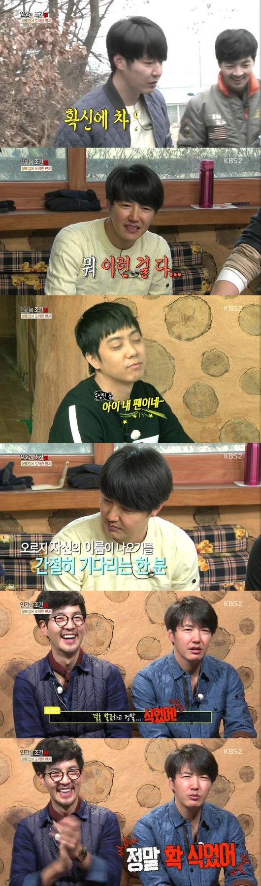 한편 이날 '인간의 조건2'은 윤상현, 은지원, 허태희, 봉태규, 현우, 김재영이 멤버로 함께 한다. 이날 방송에서는 지난주에 이어 물없이 살기에 도전, 최소한의 물로 생활하는 여섯 멤버들의 모습이 그려졌다.