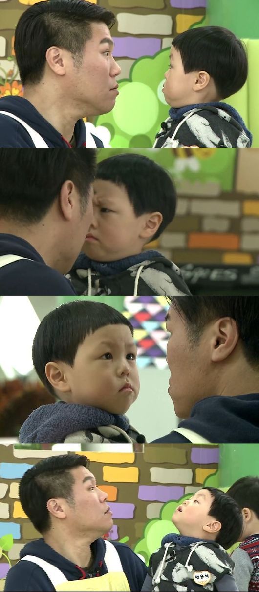 두 사람은 약속이나 한 듯 같은 표정과 행동으로 눈 싸움을 이어갔으며, 귀여운 윤석이의 승부욕에 절로 미소가 지어진다.