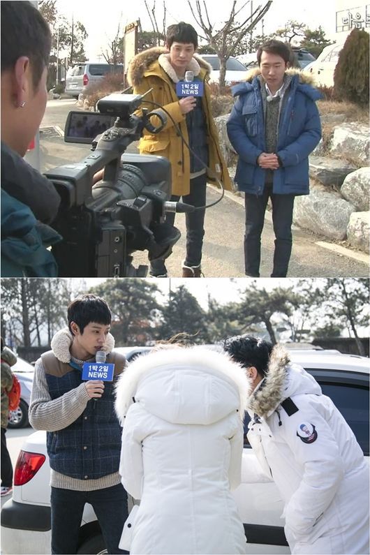 방송에 앞서 공개된 스틸 속 정준영은 한 손에 ‘1박 2일 NEWS’라고 적힌 마이크를 쥐고 당당한 모습으로 카메라를 응시하고 있는데, 그 옆에서 정새배 기자는 어쩔 줄 모르는 듯한 모습이어서 무슨 상황인지에 대한 궁금증을 자아낸다.