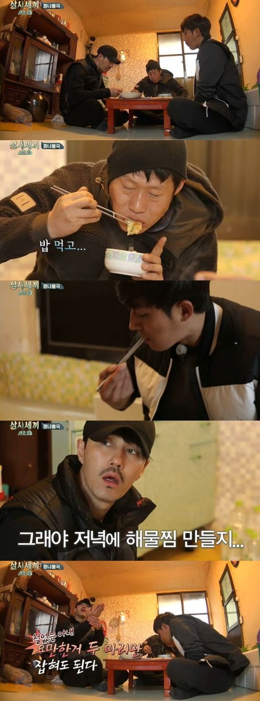 tvN '삼시세끼-어촌편' 4회 말미, 이제껏 단 한 차례도 보지 못했던 풀샷이 등장했다. 바로 한 밥상에서 밥을 먹고 있는 차승원-유해진-손호준, 3인의 풀샷이다.