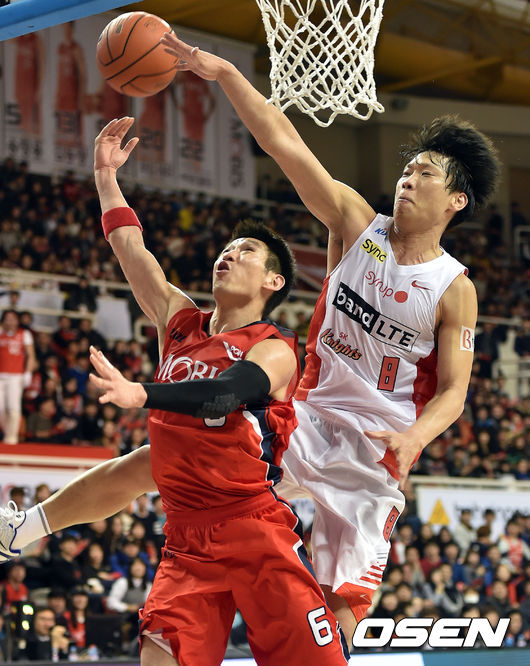 15일 오후 울산 동천체육관에서 열린 2014-2015 KCC 프로농구 울산 모비스와 서울 SK의 경기,4쿼터 모비스 양동근이 SK 박상오의 수비를 상대로 골밑슛을 시도하고 있다