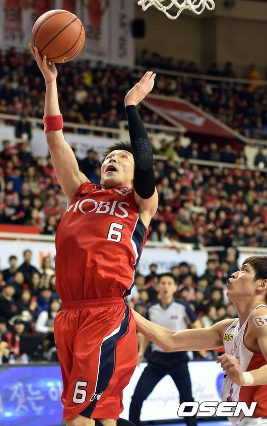 15일 오후 울산 동천체육관에서 열린 2014-2015 KCC 프로농구 울산 모비스와 서울 SK의 경기,4쿼터 모비스 양동근이 골밑슛을 성공시키고 있다.