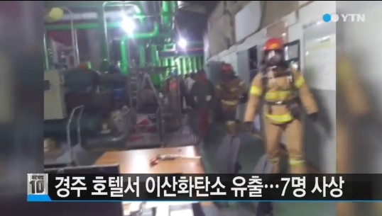 한편, 14일 오후 경주 코오롱 호텔에서 보일러실 소화설비의 이산화탄소가 누출돼 단열재 철거 작업을 하던 근로자 1명이 숨지고 6명이 다쳤다.