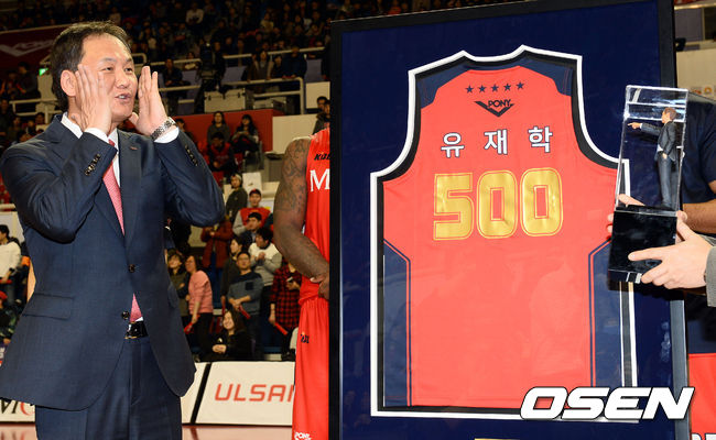 경기종료후 유재학 감독의 통산 500승 시상식이 진행되고 있다. /soul1014@osen.co.kr