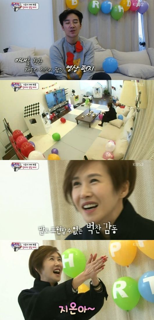 15일 방송된 KBS 2TV 예능프로그램 ‘해피선데이-슈퍼맨이 돌아왔다’에서는 아내 윤혜진의 생일상을 차린 엄태웅의 모습이 그려졌다.