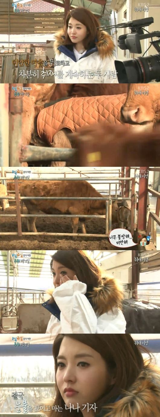 이날 김나나 기자와 김주혁 팀은 구제역 관련 리포팅을 진행했다. 특히 태어난지 열흘이 된 송아지는 리포팅 중에 어미 소에게로 도망쳐 김나나 기자의 마음을 불편하게 했다.