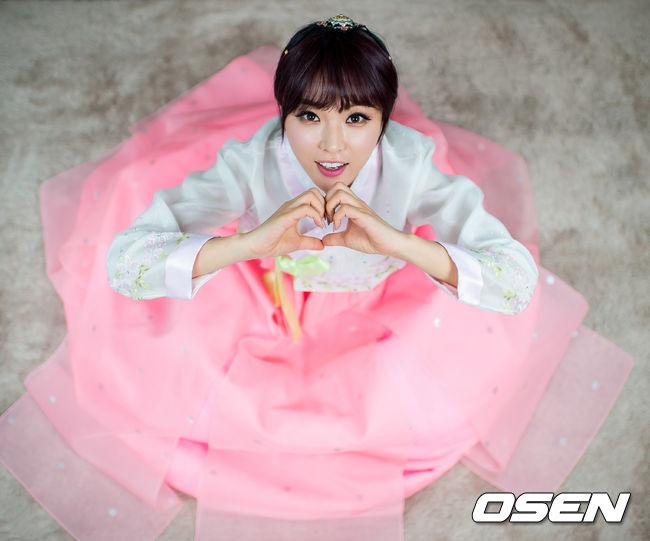 홍진영,'한복 곱게 차려입고 하트 뿅~'