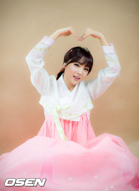 홍진영,'한복 곱게 차려입고 대형 하트 발사'