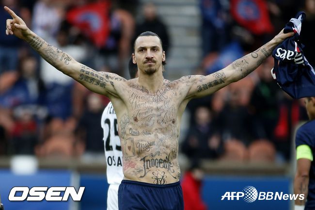 기아 50명의 이름을 몸에 새긴 즐라탄 이브라히모비치(34, 파리생제르맹)가 유니폼 상의를 벗는 세리머니로 유엔세계식량계획(World Food Programme)의 지원을 호소했다.