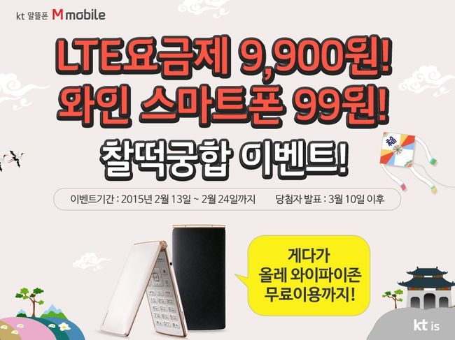 M 모바일은 LTE 요금제를 24개월 약정으로 가입할 경우, LG 와인스마트폰을 월 99원(부가세 별도) 또는 무료로 제공하는 와인스마트폰-LTE요금제 '찰떡궁합' 이벤트를 진행한다고 16일 밝혔다.