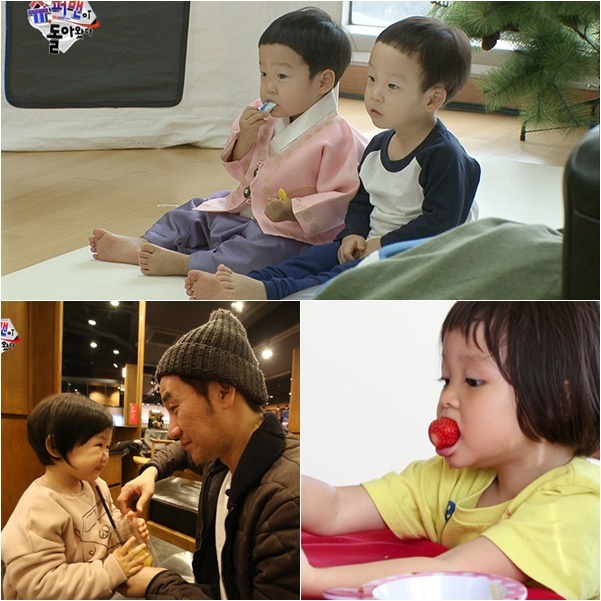 진정한 붕어빵 쌍둥이가 나타났다. 일란성 쌍둥이인 라희와 라율은 시청자들을 시험에 들게 했다. 사실 서언과 서준, 대한·민국·만세는 조금씩 외모가 달라 자꾸 보다보면 구분이 됐다. 허나 라희와 라율은 제 아무리 지켜봐도 누가 누군지 도통 모르겠다는 게 시청자들의 혼란. 이 큰 눈망울을 가진 ‘라둥이’는 첫 등장부터 엄청난 파급력을 불러왔다. 슈의 고난에 가까운 육아로 쑥쑥 크고 있는 라희와 라율은 그야말로 걸어다니는 인형. 조금 체격이 큰 아이가 동생 라율이라는 엄마 슈의 들어도 구분 못할 방법에 시청자들은 피식 웃고 말았다. 구분법조차 소용이 없다. 쌍둥이들은 언제나 똑같은 옷을 입고 다녀 귀여운 매력이 배가 되는데, 라희와 라율 역시 마찬가지다. 고운 한복을 차려입고 함께 걸어다니는 모습만으로도 안방극장의 눈길을 홀라당 빼앗았다.