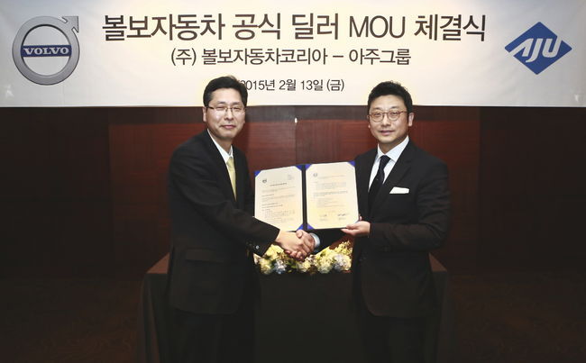 볼보자동차코리아는 서울 및 수도권 지역의 판매를 담당할 새로운 딜러로 '아주그룹'을 선정하고, 지난 13일 신라호텔에서 상호업무협약(MOU: Memorandum Of Understanding)을 체결했다.